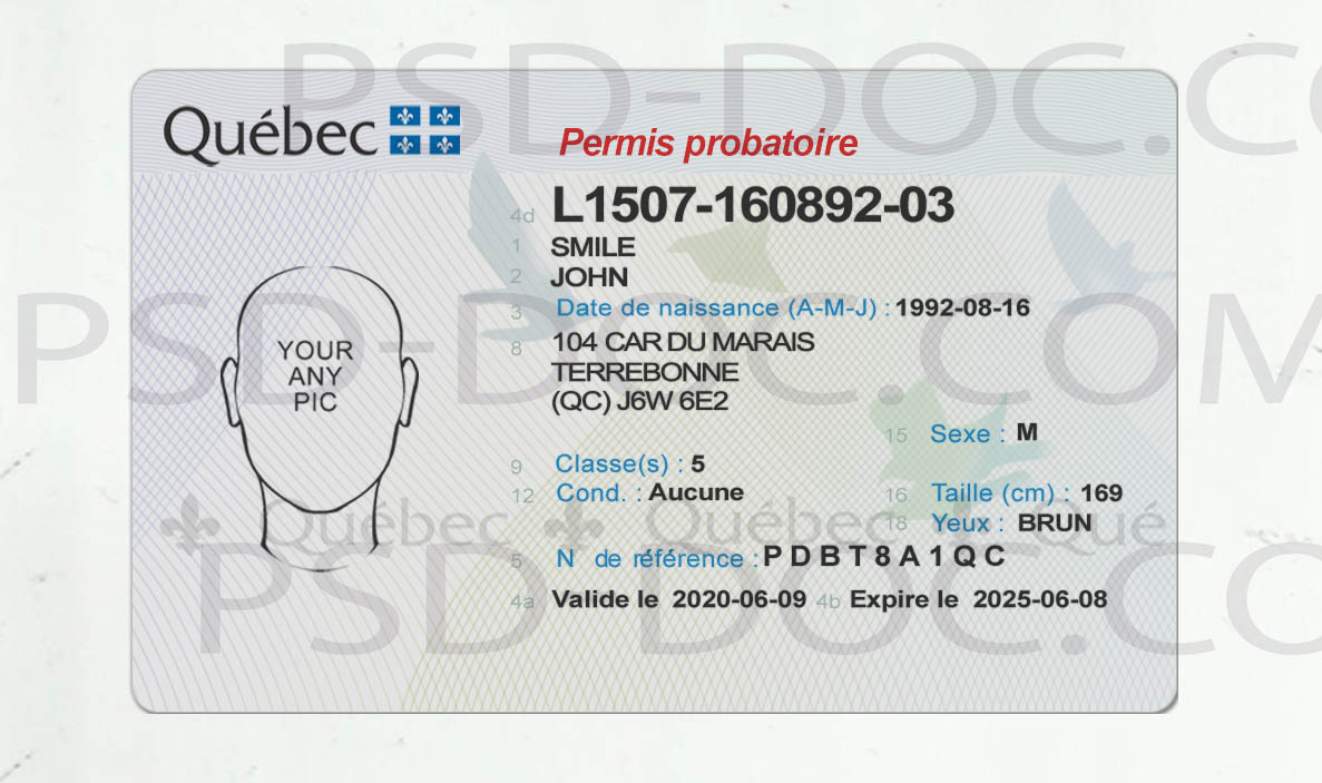 PSD Template Canada Driver License (for make a DL with any name/dob/address)