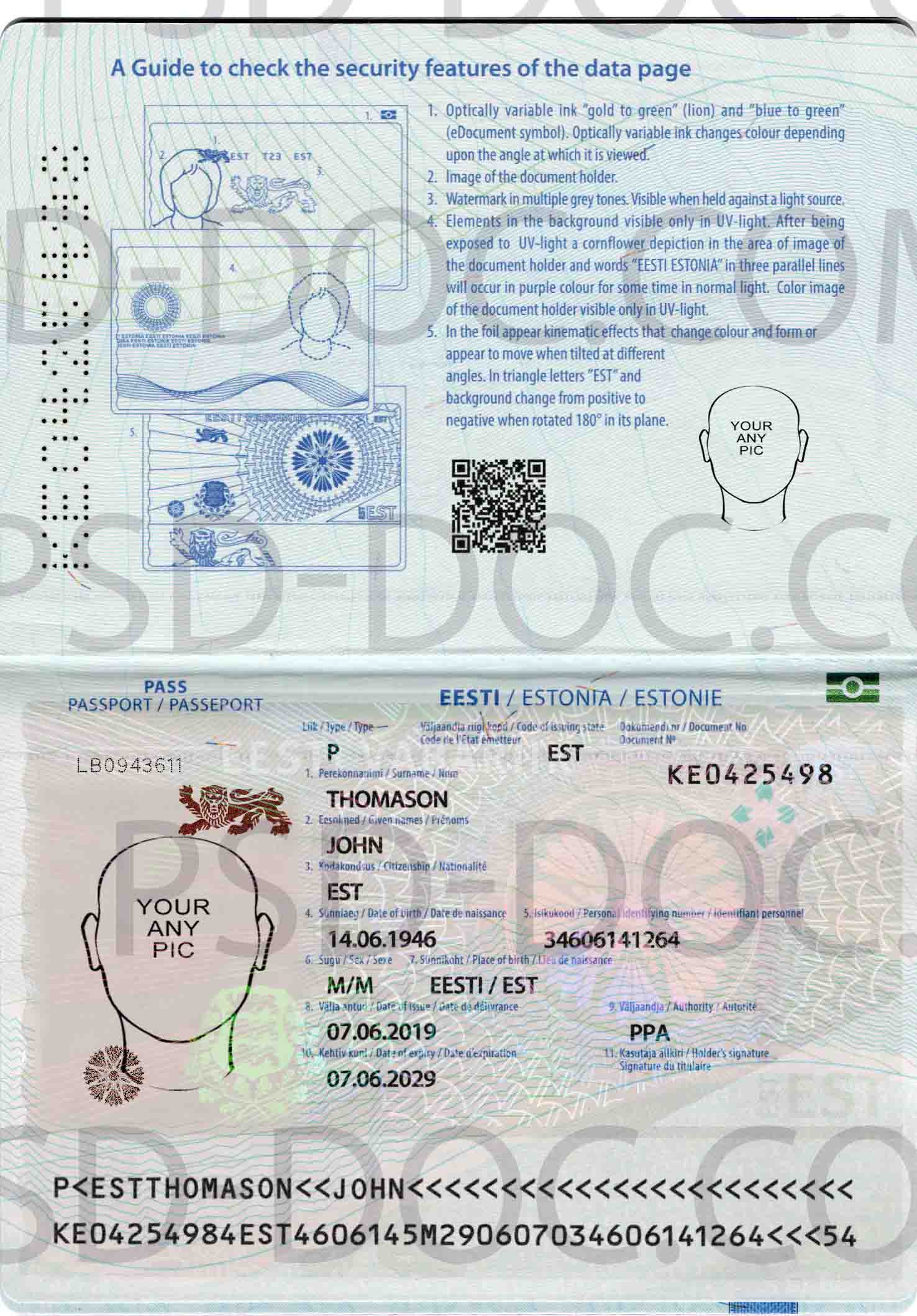 PSD Template Estonia Passport (for make a passport with any name/dob/city/photo)