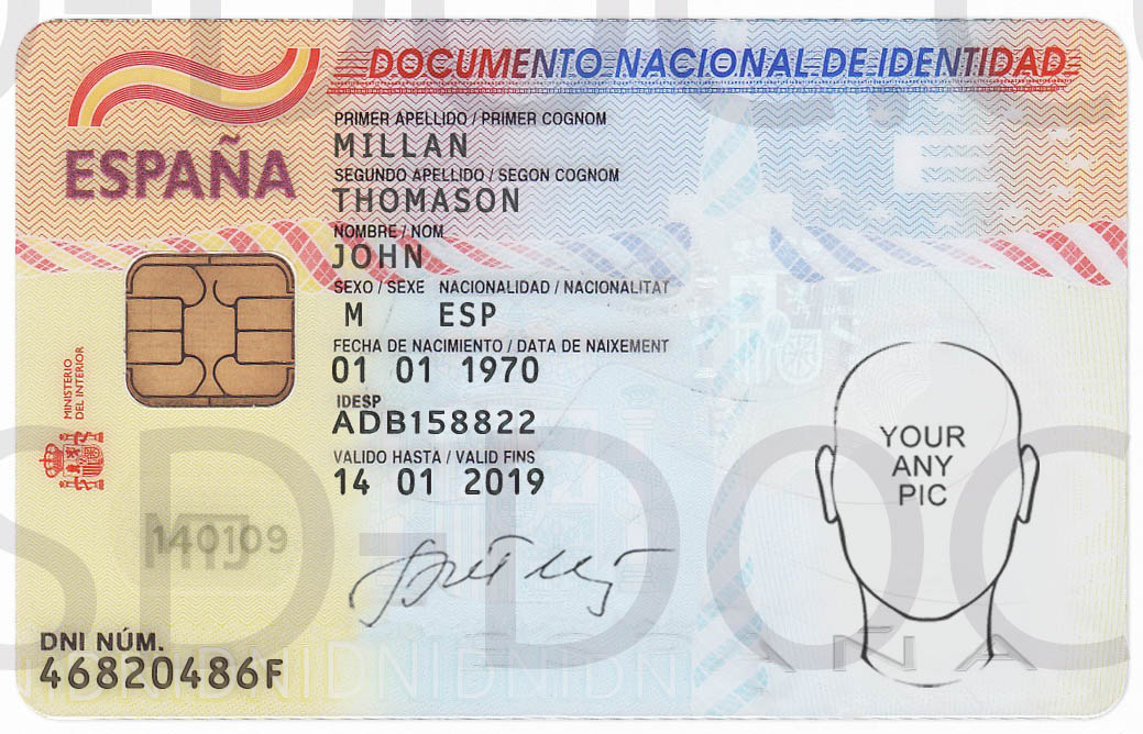 PSD Template ID card Spain front + back (for make a ID card with any name/dob/address)