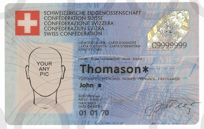 PSD Template ID card Switzerland front + back (for make a ID card with any name/dob/address)