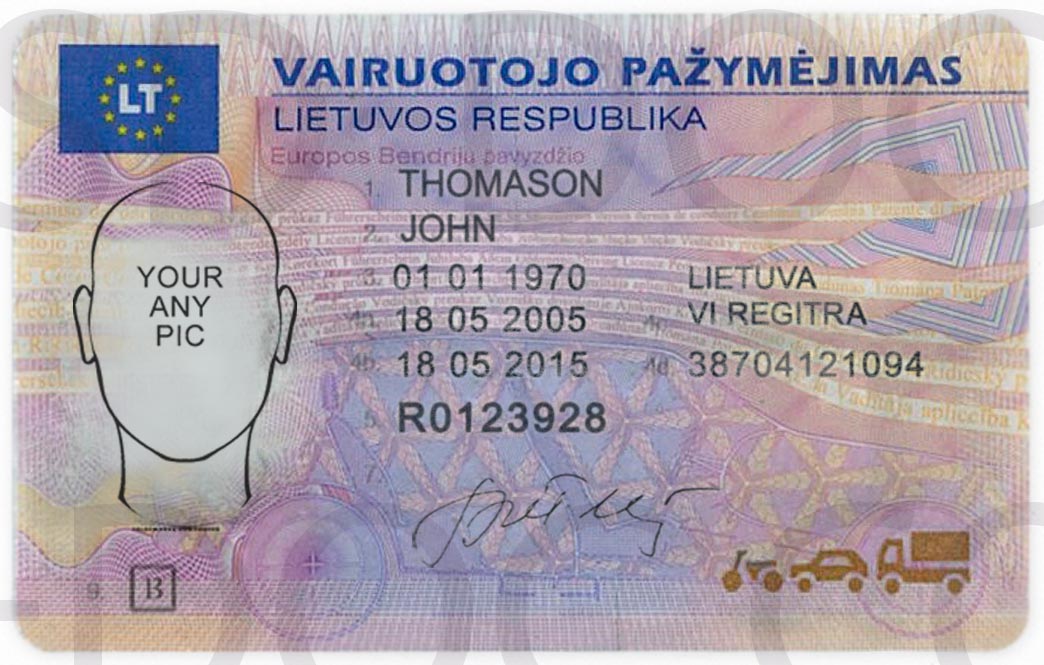 PSD Template Lithuania Driver License front + back (for make a DL with any name/dob/address)