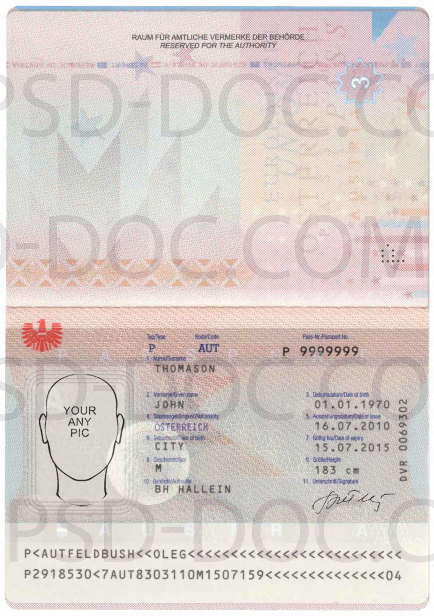 PSD Template Passport Austria (for make a passport with any name/dob/address)