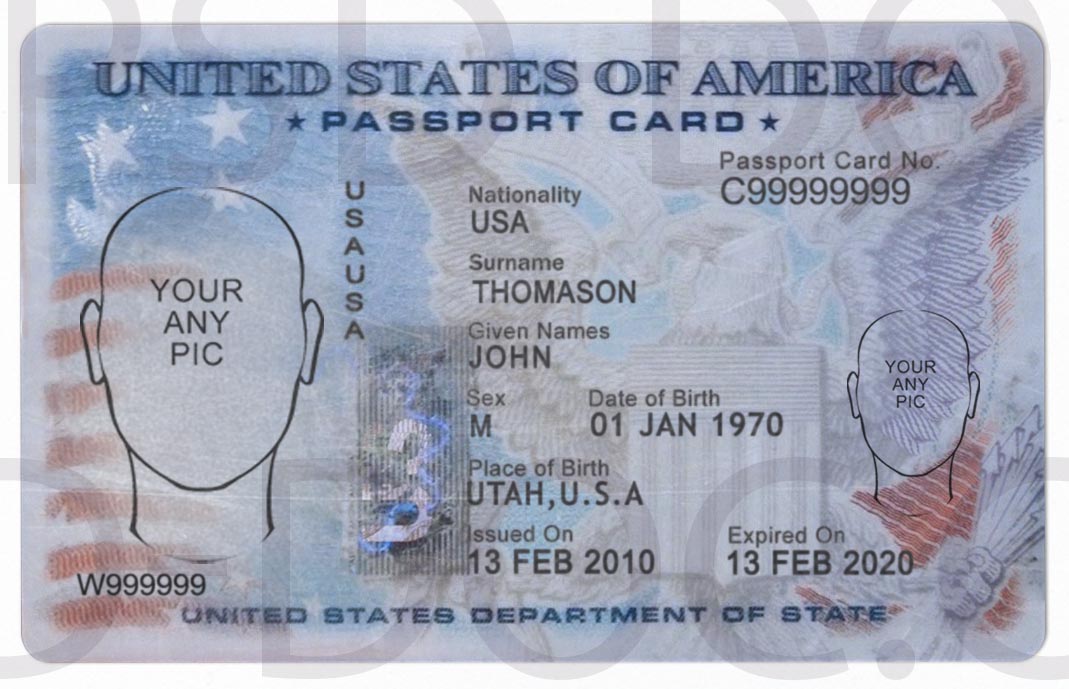 PSD Template Passport Card USA (for make a passport with any name/dob/city)