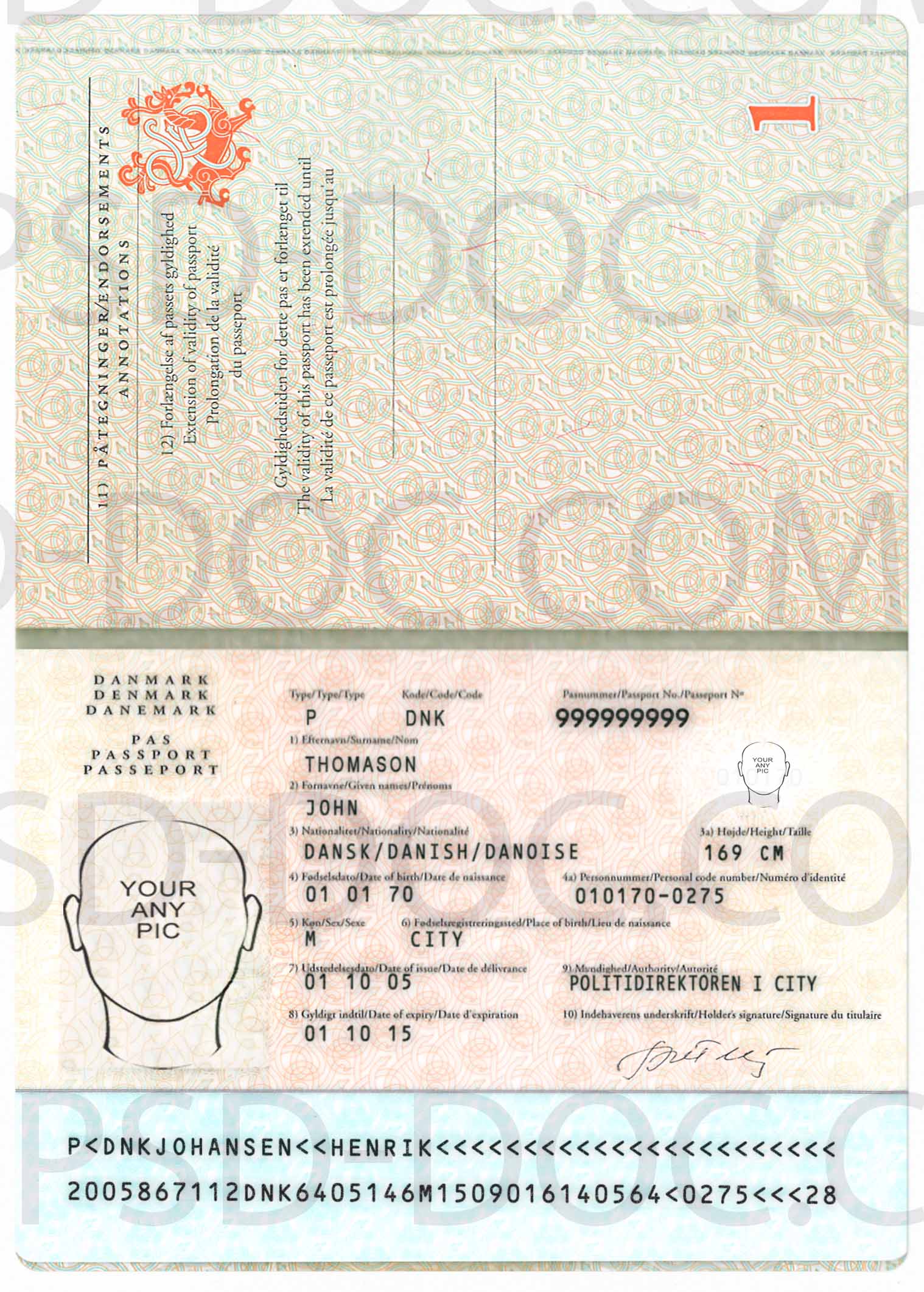 PSD Template Passport Denmark (for make a passport with any name/dob/address)
