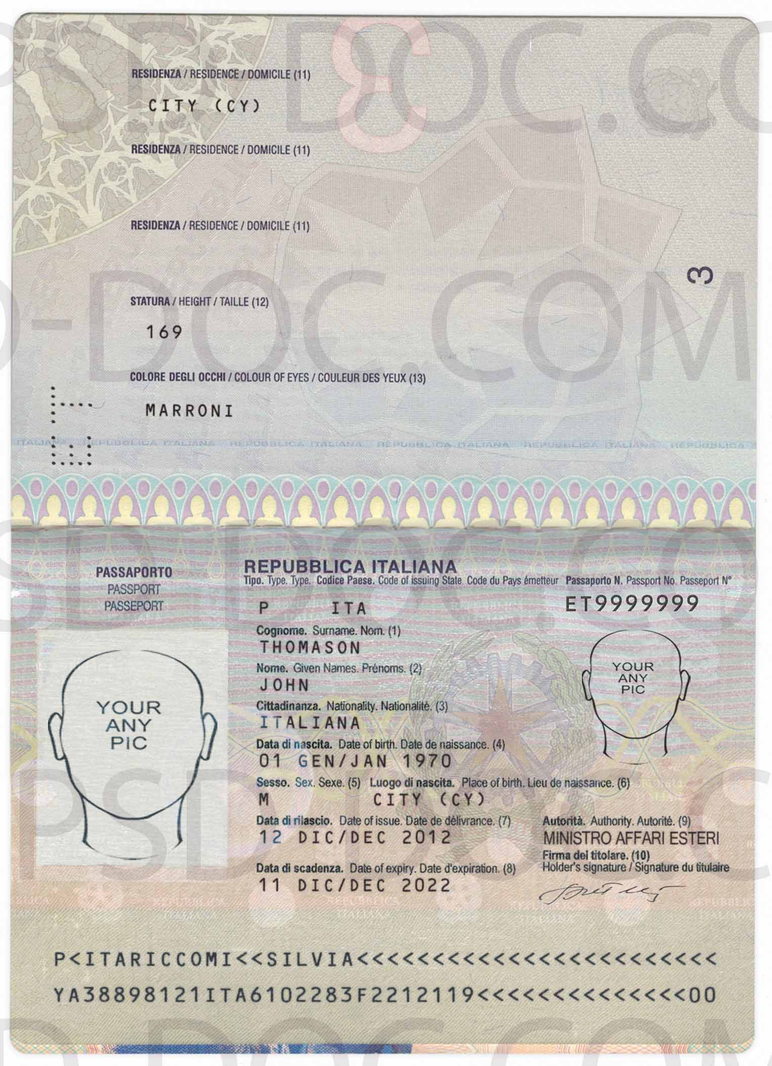 PSD Template Passport Italy (for make a passport with any name/dob/city)