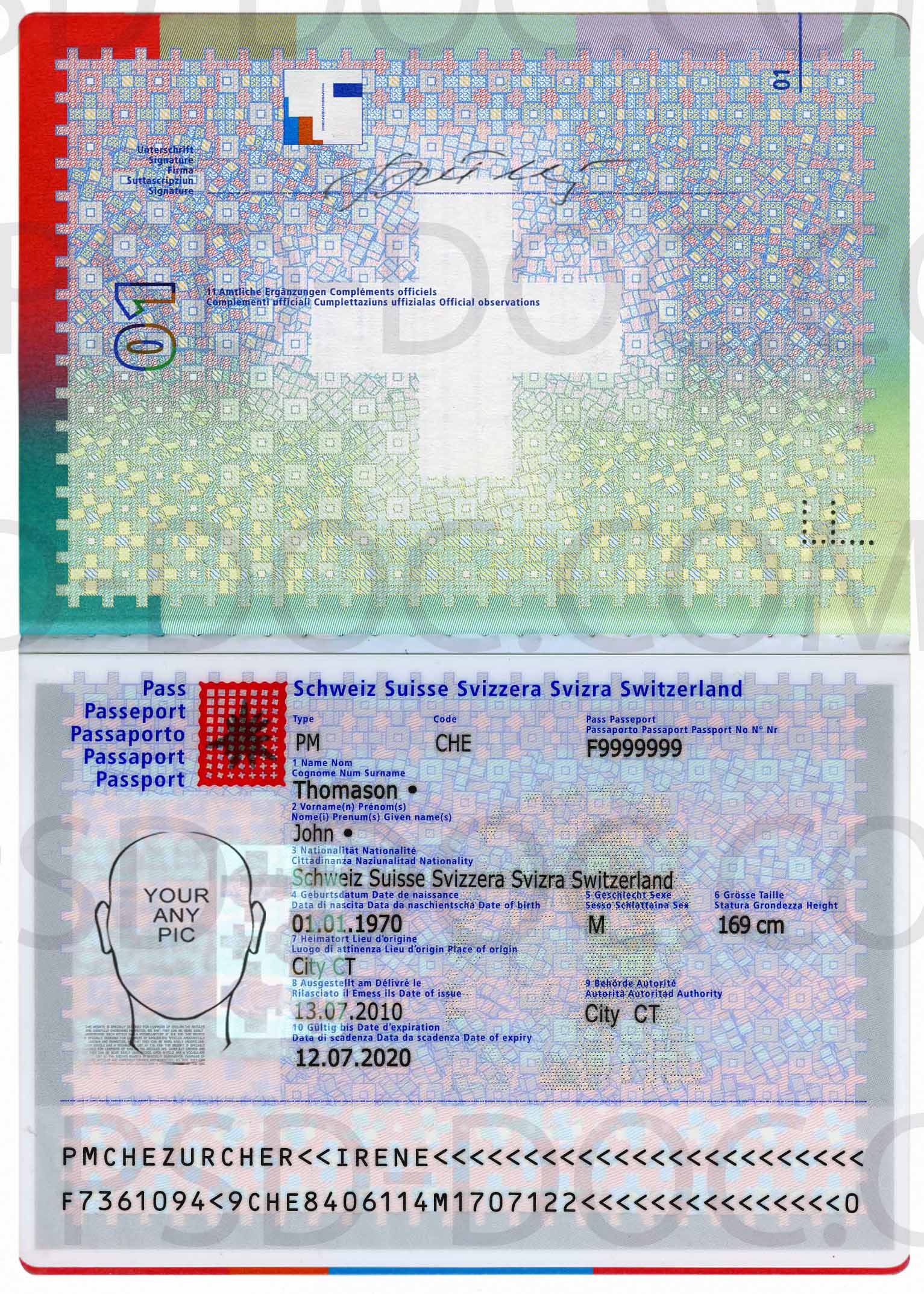 PSD Template Passport Switherland (for make a passport with any name/dob/address)