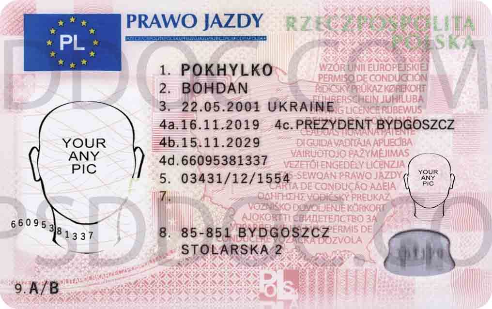 PSD Template Poland DL (for make a DL with any name/dob/city/photo)