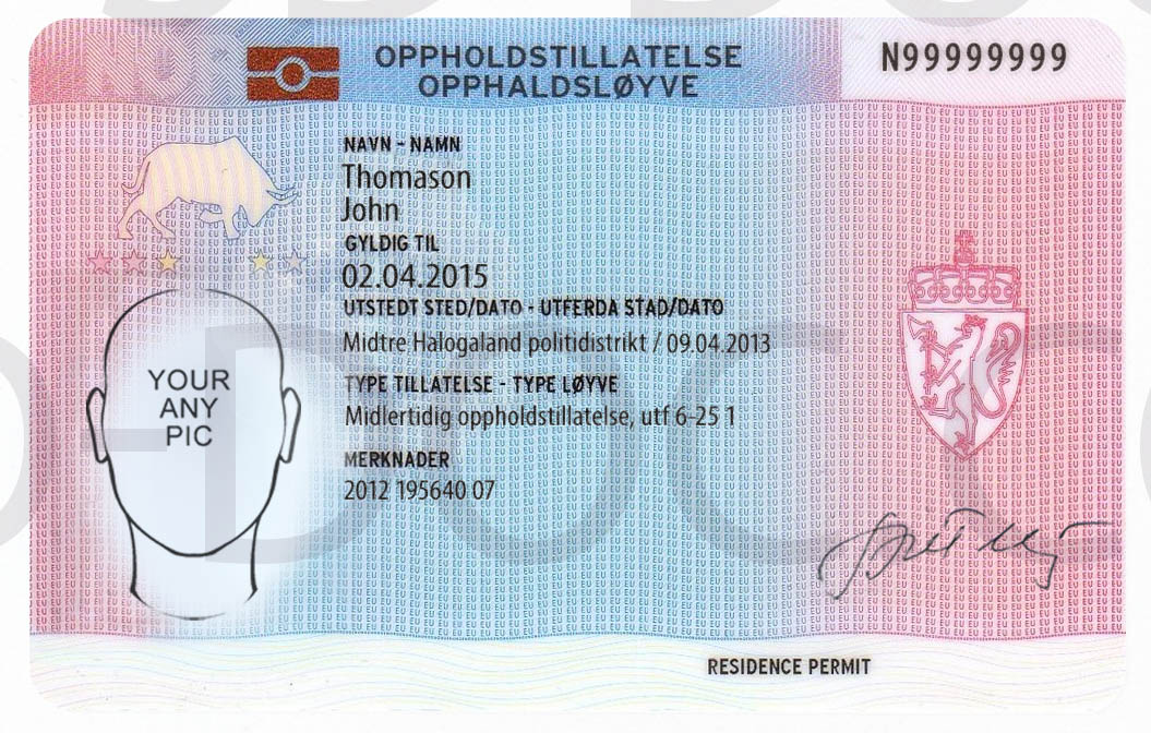 PSD Template Residence Permit Norway front side (for make a ID card with any name/dob)