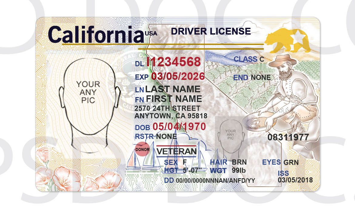 PSD Template USA California Driver License front back side (for make a DL with any name/dob/address)