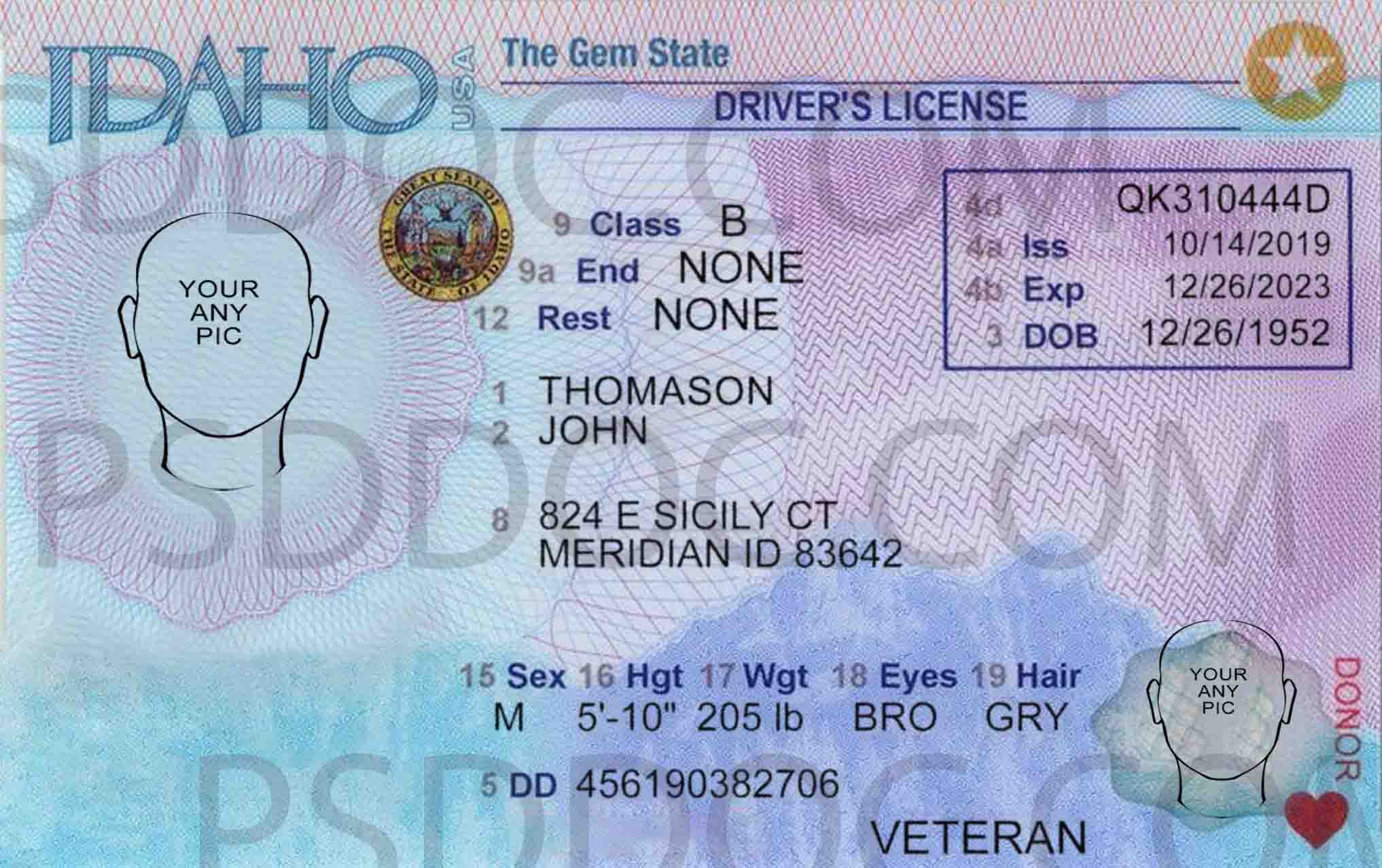 PSD Template USA Idaho Driver License front back side (for make a DL with any name/dob/address)