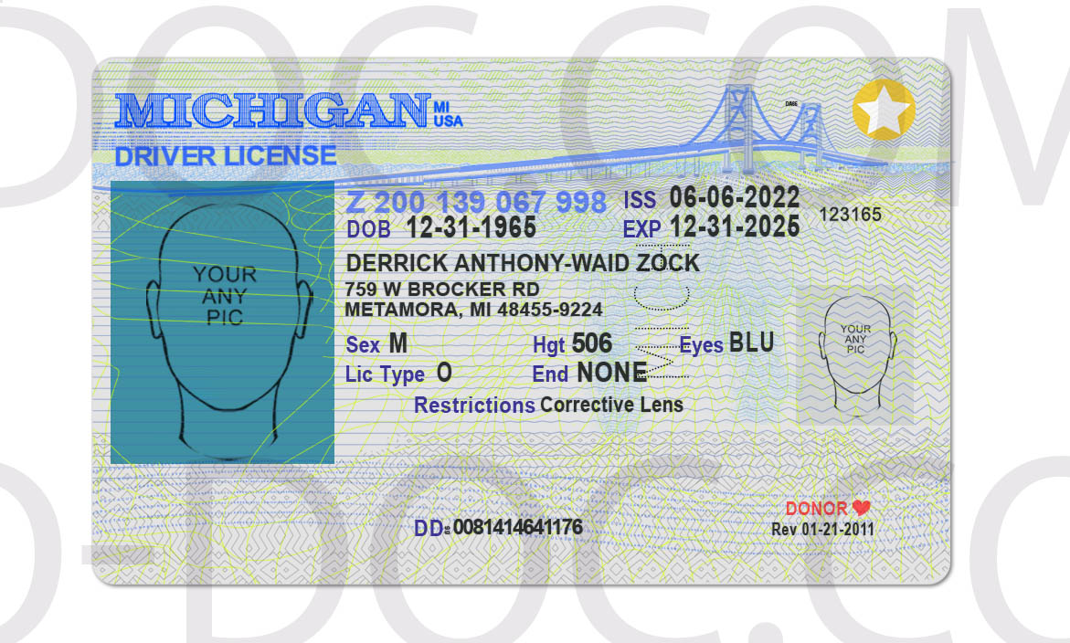 PSD Template USA Michigan Driver License front back side (for make a DL with any name/dob/address)
