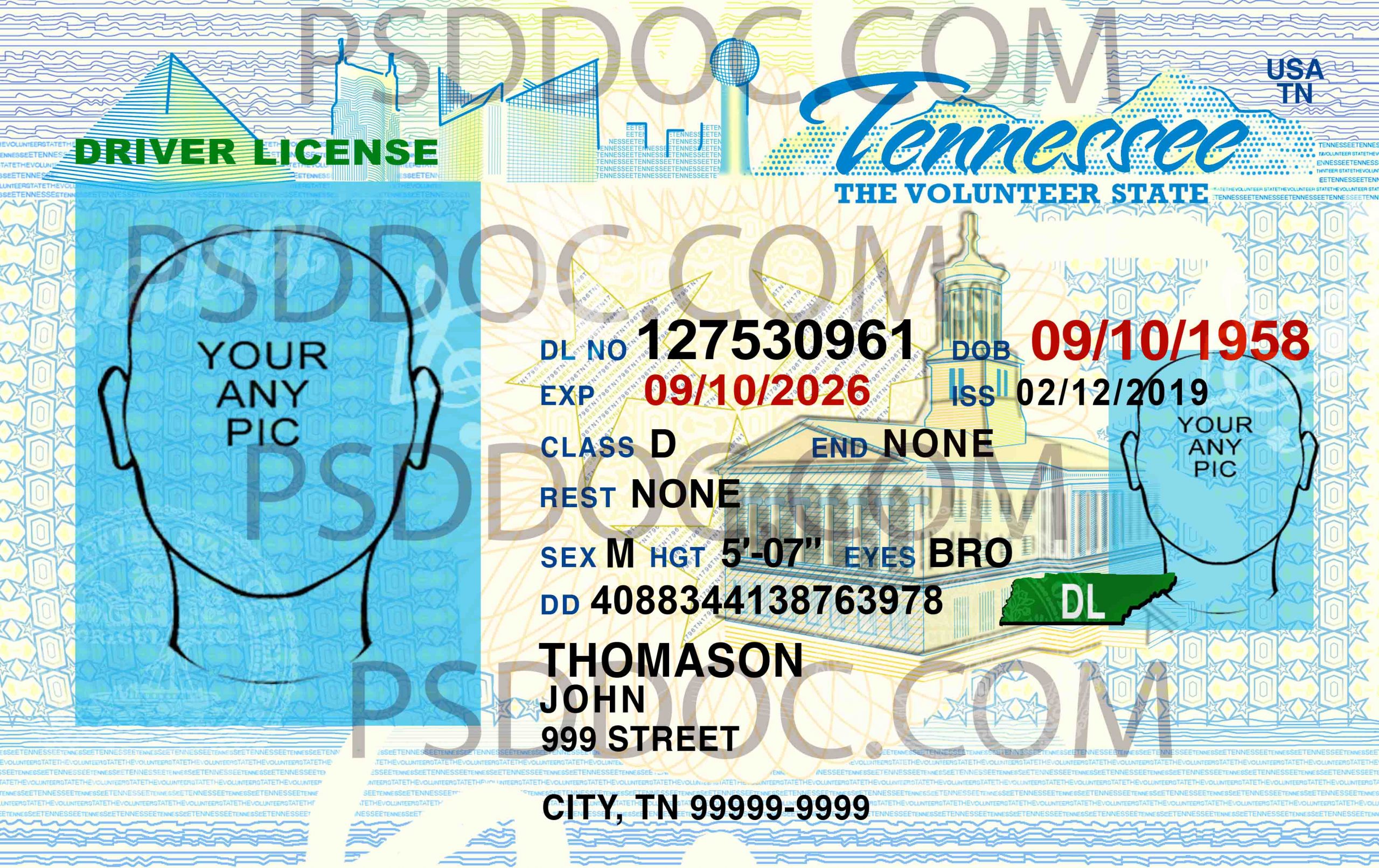 PSD Template USA Tennessee Driver License front back side (for make a DL with any name/dob/address)