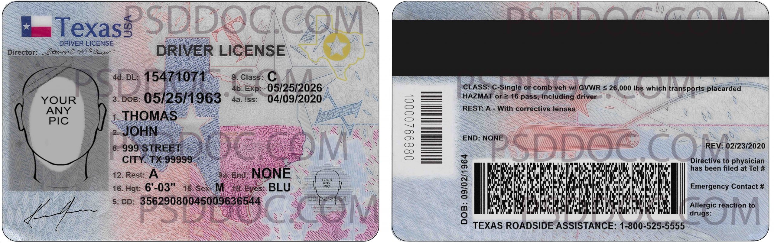 PSD Template USA Texas Driver License front back side (for make a DL with any name/dob/address)