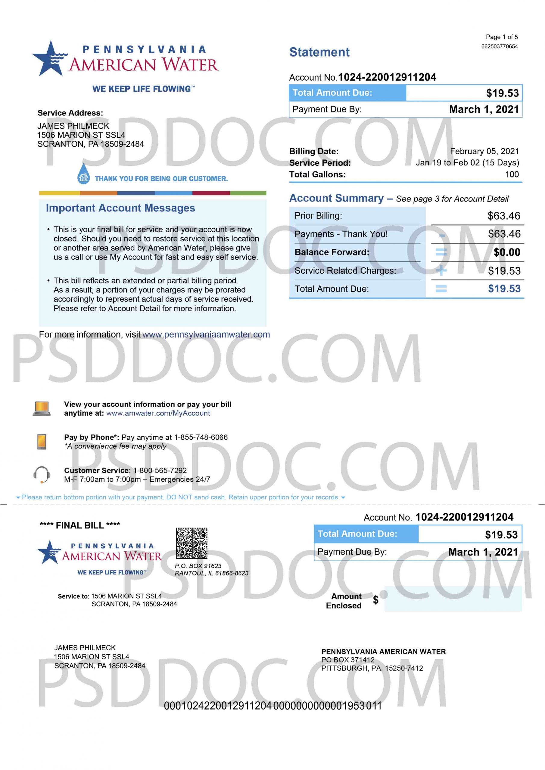 Utility bill PSD Amerian Water (water)