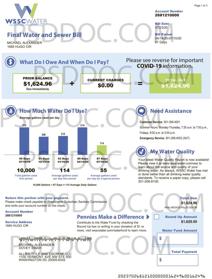 Utility bill WSSC (water)